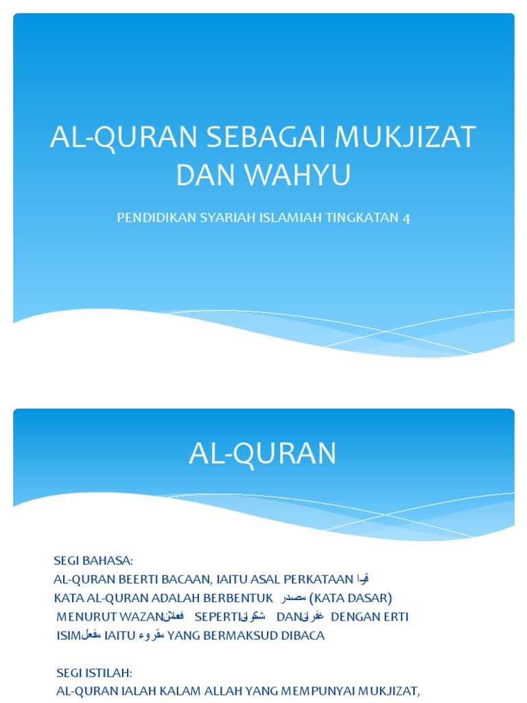 Al Quran Sebagai Mukjizat Dan Wahyu